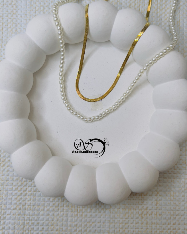 گردنبند ماري و مرواريد با قفل جدا از هم،يعني هم ميتونيد بصورت دو لاين بندازيد،هم تك استفاده كنيد با هزينه ي گردنبند صاحب دو تا گردنبند ميشي جنس زنجير ماري استيل