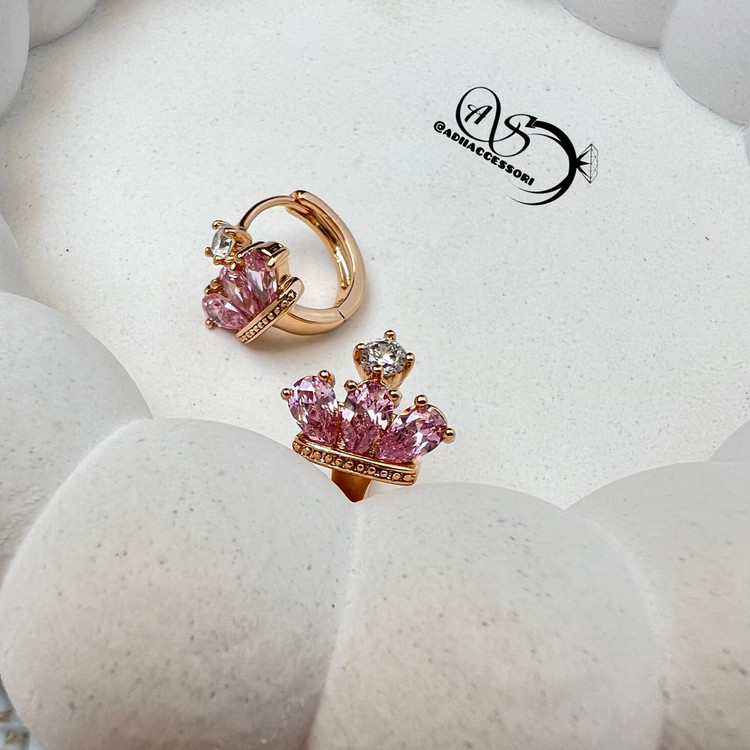 گوشواره پرنسسی تاج صورتی