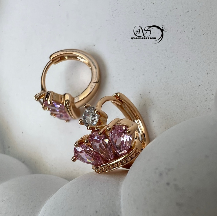 پرنسسي ترين گوشواره🌸 از برند ژوپينگ با نگين هاي صورتي و طرح متفاوت 👑