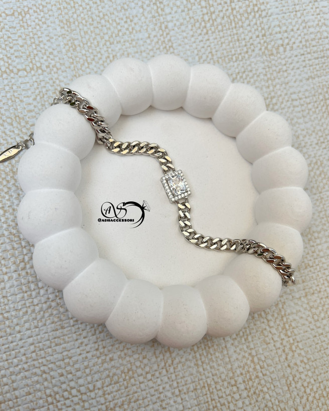 دستبندكارتيرسيلور با نگين مربع جواهري از برندژوپينگِ حك ژوپينگُ داره ضدحساسيت